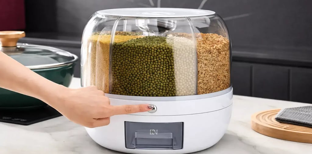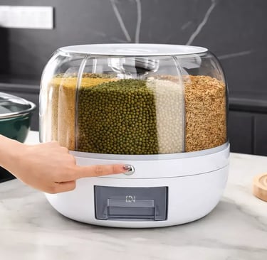 Esse dispenser giratório 360° centraliza tudo em 6 divisões, deixa os alimentos à vista e facilita pegar o que você precisa no dia a dia.