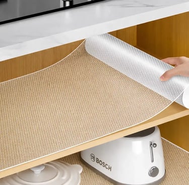 Com acabamento transparente e padrão antiderrapante, ele se adapta a diferentes espaços sem interferir na estética do móvel. Pode ser usado em armários, gavetas, prateleiras, geladeiras e até no guarda-roupa, protegendo roupas e utensílios da umidade e do contato direto com a superfície.