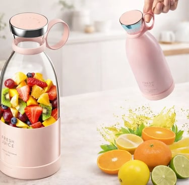 Esse liquidificador portátil tem formato de garrafa, carrega sem fio e é prático pra levar pro trabalho, academia ou viagem.